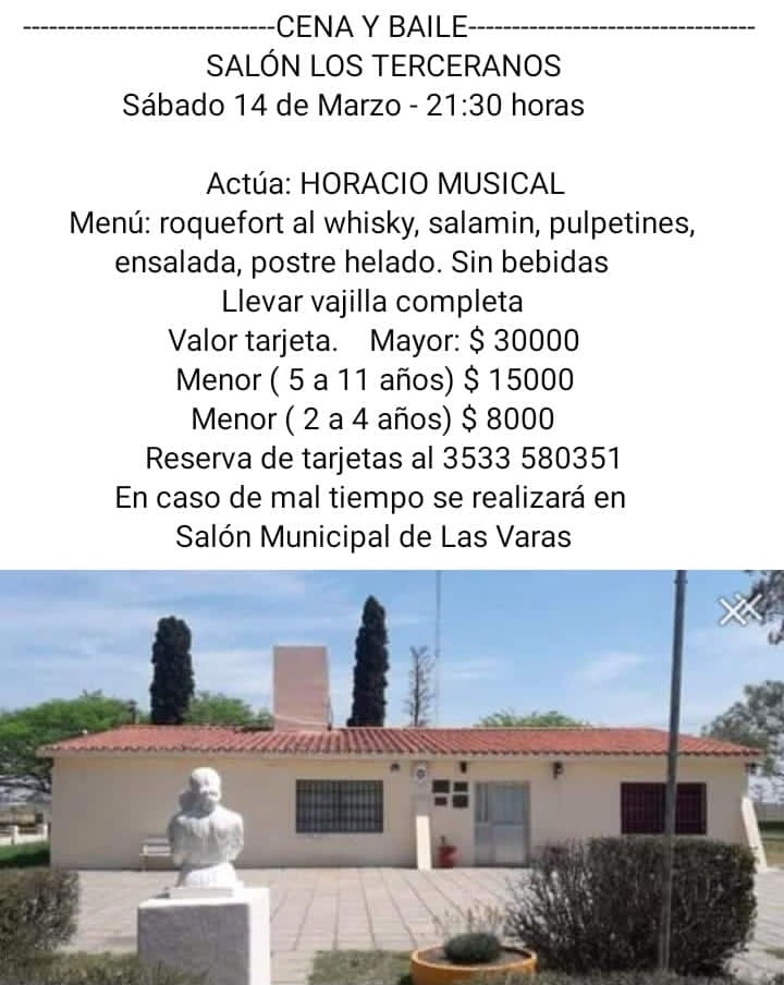 Debido al critico estado de los caminos la Cooperadora decidió llevar a cabo la cena directamente en el Salón Municipal de Las Varas!