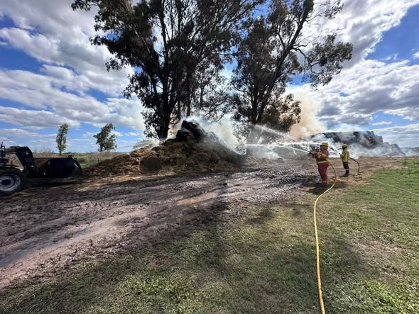 En el lugar y, por causas a establecer, alrededor de unos 500 megafardos de alfalfa se encontraban en llamas.