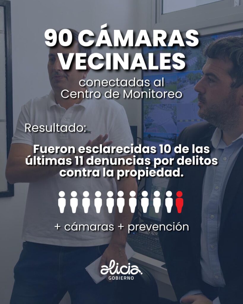 Durante el último año fortalecimos la seguridad con la formación de la Guardia Local, nuevos equipamientos, programas de educación vial, renovación de señalización y la ampliación del sistema de cámaras de monitoreo, que hoy cuenta con 90 dispositivos activos.