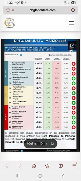 La encuesta que realizó la Consultora CB correspondiente a Marzo ubica al Intendente de Saturnino María Laspiur como el tercer Jefe Comunal con mejor imágen en San Justo.